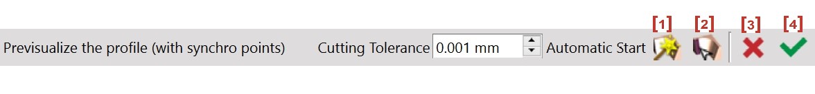 ![]() | This command enables to create profiles for 4 axis machining by clicking the faces of the solid. Click on starting and ending faces and then the starting point. A new entity ‘double-profile’ is created, which will be recognized later when creating the threading point |