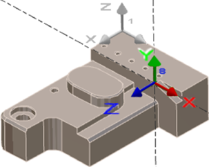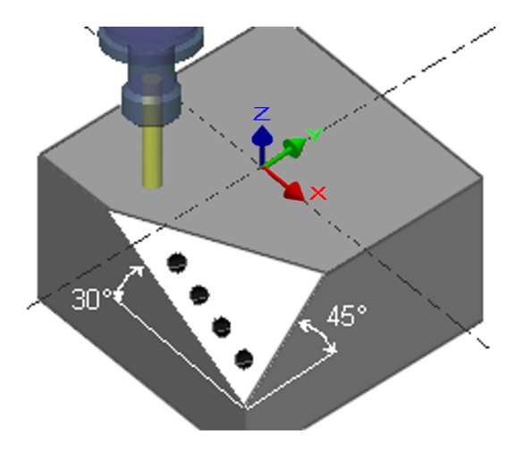In the case below, we have the rotations C -90°, A -30°, B +45°, the origin point is the center of a hole of the solid, you can select it by pressing the Ctrl and Shift keys and clicking on the edge of the hole at the same time.