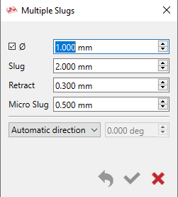 ii/ Slug and Micro Slug: definition of the slug in night & day strategies. This distance is the material left when you program partial passes. In night strategies, the value can be larger to ensure the rigidity of the part and the quality of machining since you can also define a micro slug to maintain the part. |