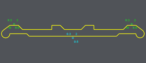 Give the location of the point by entering its coordinates or by clicking a point on the screen. If needed (check the box), enter the diameter of the multiple slug. The points displayed show a 'M' for Multiple. On the image below, the multiple slugs are set in green while the threading point is blue. Warning: defining a threading point is still necessary and obligatory. In the strategy process, the machining will be operated in 3 areas, according to one threading point and 2 multiple slugs. | ![]() |