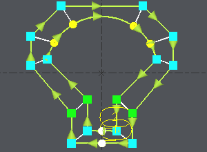 The synchro point can only be defined on existing points or elements extremities. You have to cut an element : click on [6] and then click on the arc, you can move the cursor all along the element, click on the screen when you want to cut. A circle (tangency) or a square (sharp angle) is displayed where you cut. | Cut of the arc with the white cursor ![]() |