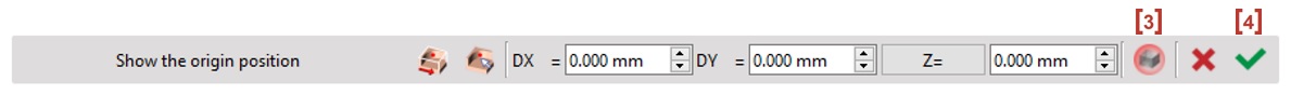 You can also define the origin in 2 steps: firstly click a point or choose a predefined point (reference point) and secondly give an offset on X axis (DX) or Y axis (DY) according to this reference point.