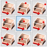 You can set the origin according to 9 predefined positions on the part by clicking on [1].