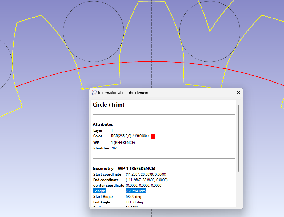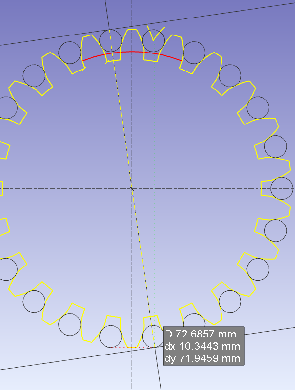 The three left fields concern the arc length for the number of teeth controlled where the tooth is wider.