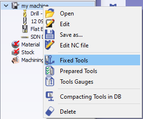 We can accede to these lists from the Machine file, or directly in the Machining tree: