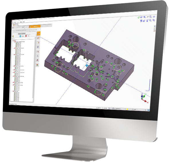 GO2cam for mecanic | Software developed in partnership with Mecasoft s.a. Thanks to GO2mecanic’s simple interface, Mecanic users can retrieve 3D files from all CAD software, prepare the geometries to be machined and transfer them to Mecanic. All process can be automated. | ![]() |