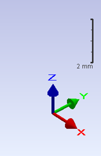 The interactive system of axis in GO2cam follows the standard RGB color. The color can still be changed in Tools/Options/Display. The Scale can also be found on the screen and reflects the current grading of the screen at that moment. Zoom in and out with the scroll to see the scale value adapt accordingly. | ![]() | |