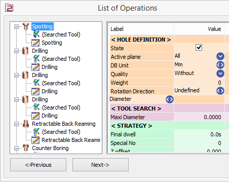 An operation list is automatically created to machine this shape. Then you can adjust this operation list, add or delete operations and even define possible formula.