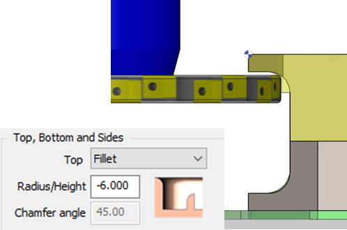 ![]() | Pocket Fillet: radius is programmed only on top of the pocket |