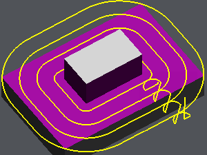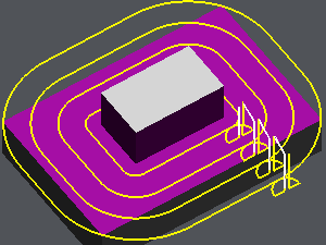 Step 3 ![]() | Choose if the passes are compact (no retract of the tool between the passes) or not (the tool goes out the material between the passes). The option is not available (grayed out) if the ‘Part’ toolpath is chosen: the passes will always be ‘independant’ (not compacted) and always have gain/loss of compensation for each pass. |