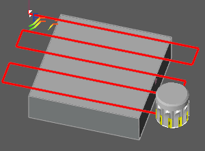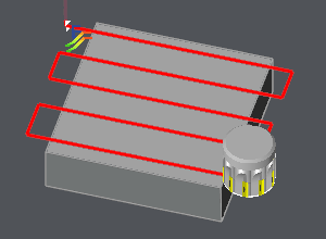 This parameter defines how the tool goes out of the material between 2 passes. The facing automatically go over the part with the value of the tool diameter. You can set an overlength to go further in open areas, only in the direction of toolpath. |