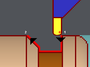 This option enables to properly program Roughing and finishing operations with the same tool. ( Roughing toolpath in Imaginary Nose, Finishing in Part). In such a situation, it is advised to force the P Point option directly in the tool page so as to not have 2 different piloted points for the same tool. Applicable only for Finish Groove cycle |