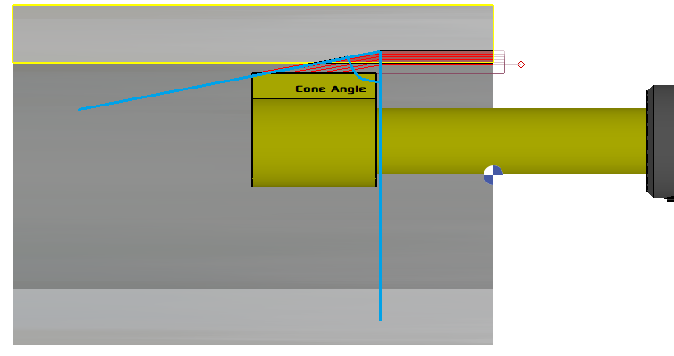 Setting a retraction point also allows the possibility to define a Cone Angle. In the case where a keyway with a sloped end is desired, the cone angle comes into play to define this machining toolpath.
