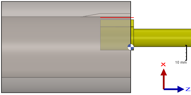 The Retract Distance (Peck) value defined by the user determines the distance of the retraction toolpath away from the workpiece, in the X-axis.