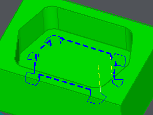 Tolerance = 0.1, all the areas to rework are machined. | Tolerance = 0.25, only the corners are machined. |