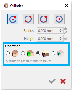 The Boolean operation is also present here for quicker manipulation of the solid.