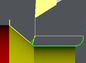Stepover = 1 mm Retract = 0.5 mm The yellow path is 0.5 mm shorther to leave some material on the corner. The green path finishes the shape by overlapping the yellow toolpath. | ![]() |