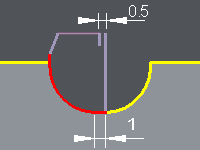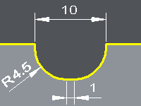 2. The groove has a flat bottom with a 1 mm width. | First side of the finishing | Second side of the finishing: the stepover of 3 mm can not be respected, but the stepover is done anyway (0.5 mm) |