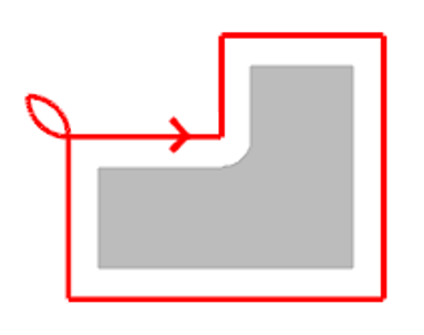 If the direction of profile and the direction of toolpath do not fit according to the shape of solid, GO2cam automatically inverts the profile direction. In the image on the right, the profile is counterclockwise and the tool is programmed on the left side of solid: GO2cam automatically inverts the profile direction to avoid machining inside the workpiece. | ![]() ![]() | ![]() |