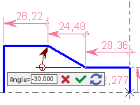 To modify the values, simply double-click on the dimension or on the element, or choose Edit element. The value can be modified in a RapidEdit menu, as shown below. The dimension recovers the black color.