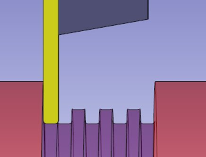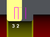 First plunge | One flank is completely machined | Then, the other flank is done |
