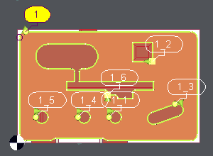 Pocket with many islands at different altitudes By clicking the bottom face, the profile 1 is created and 6 islands are recognized. The altitudes of the islands are automatically read on the solid. As shown on the 3rd image, if an island has two different altitudes, the highest is taken to leave some material for finishing. | ![]() |