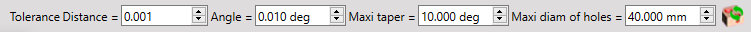 Tolerances : Distance and Angle tolerances used for the calculation. Under these tolerances, the values of 2 lengths, 2 diameters and 2 angles are considered as equal.