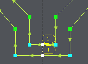 The number of elements is now the same on the 2 profiles : Click on [4] and then click on 'All', all the extremities of the 2 profiles are linked 2 by 2. | The synchro points are created automatically ![]() |