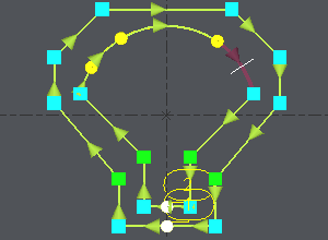 The synchro point can only be defined on existing points or elements extremities. You have to cut an element : click on [6] and then click on the arc, you can move the cursor all along the element, click on the screen when you want to cut. A circle (tangency) or a square (sharp angle) is displayed where you cut. | Cut of the arc with the white cursor ![]() |