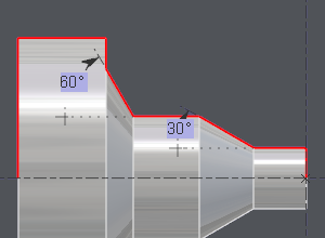 With this part, the purpose is to determine if the cones of 30° and 60° are considered as faces or diameters. | ![]() |