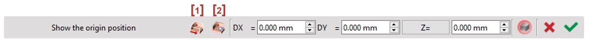 You can set the origin according to 9 predefined positions on the part by clicking on [1].