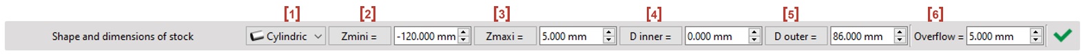 This step creates the stock shape and enables to modify the shape, the size and the position of the stock.