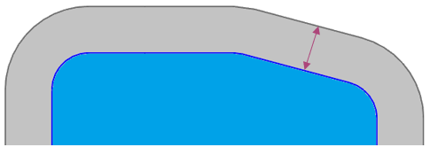 ![]() | The Cast cycle is used to create a roughing operation on a casting stock, which means shaping it parallel to the machined part with an additional thickness. The thickness of the stock relative to the part needs to be specified in the strategy, and the toolpaths will be generated based on this thickness. | Part in Blue; Thickness in Grey |