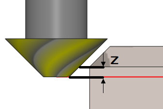 ![]() Z Delta | In this mode, the Z altitude (Bottom Z) value for the chamfer does not need to be defined during geometry selection. In the strategy page, a delta value can be defined which will offset the tool tip in the Z direction from the edge of the chamfer. | |