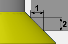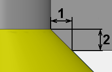 #1 on the images is the width in XY Plane of the chamfer and #2 is the Z value. Having the Z value on the same level as the chamfer edge can lead to shank collision as on the image on the left. It is advised to always offset the Z value to avoid this as shown on the image on the right. | |