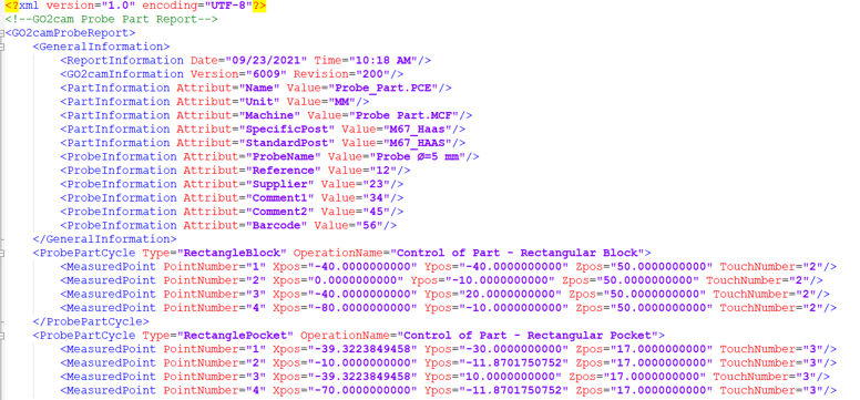 While using ‘Control of part’ probing cycles, all milling post-processors can generate a control report in XML format file with the ISO name and the extension *.MEAS.
