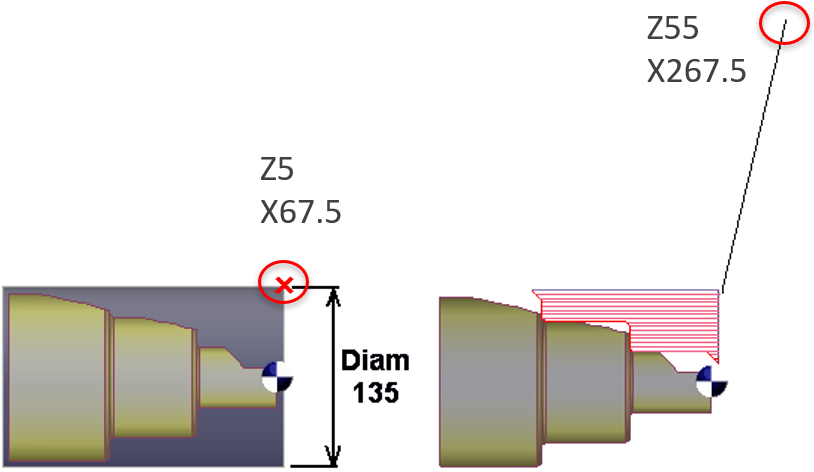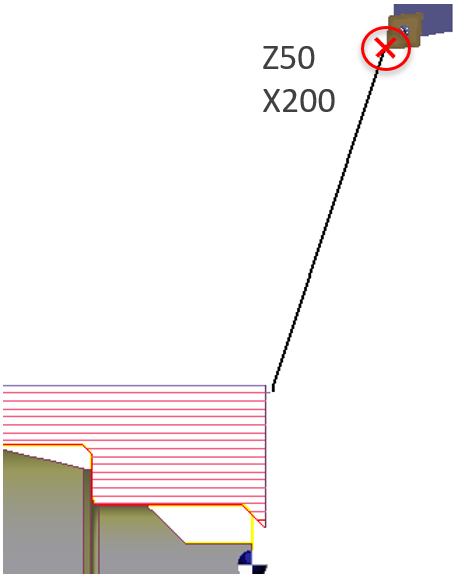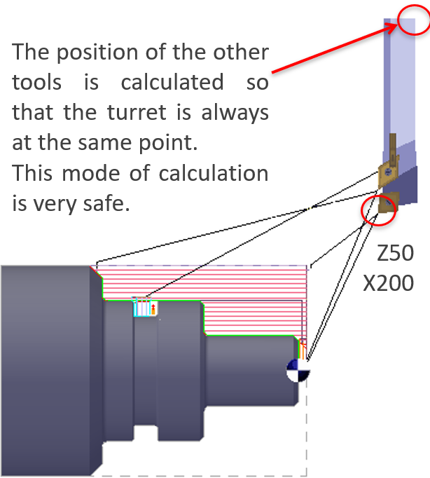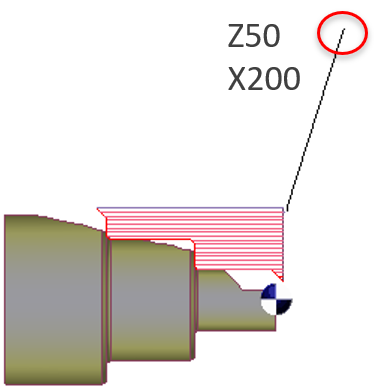 In this option, the tool will move until the point of the tool held in the turret ( indicated in red cross) is at the ZXY coordinates defined.