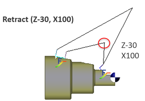 This tool approaches and retracts at the evolution point coordinates.