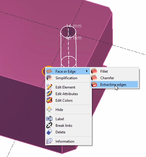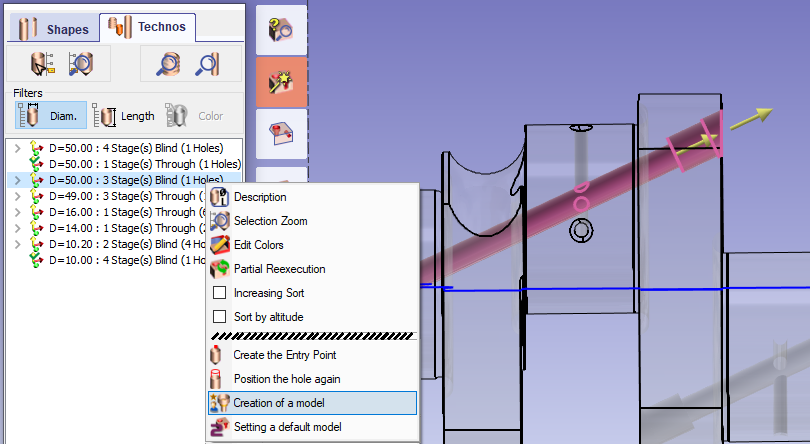 2/ If User hole templates are not available, we can right-click on the required hole and then choose 'Creation of a model'. This function enables to create the base of the model: