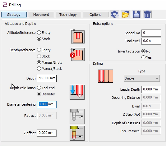 ![]() To do a counter boring operation, you have to tick Yes to the 'Machining of the top before plunge' parameter, this option will allow you to modify the Depth/Ref and 'Depth' parameters field. ![]() | |
