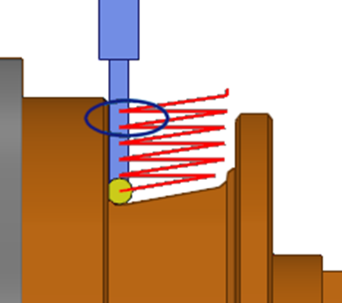 In the zig zag groove, you can program a reduction of feedrate of tool when it comes close to the groove walls. We define the feedrate reduction distance and the reduction coefficient applied to the value in Technology page.