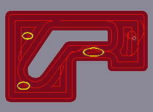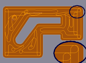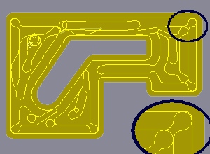 When defining large overlaps in the pockets, there may have some peaks of toolpaths in corners. A radius on the side contour pass can also be defined for deletion of sharp angles.