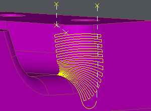 These lengths depend on the selected strategy. If Tangent is chosen, the specified length corresponds to a radius. As shown in the image, the Lead-in is set to Normal with a length of 5 mm, while the Lead-out is set to Tangent with a 2 mm radius. | ![]() |