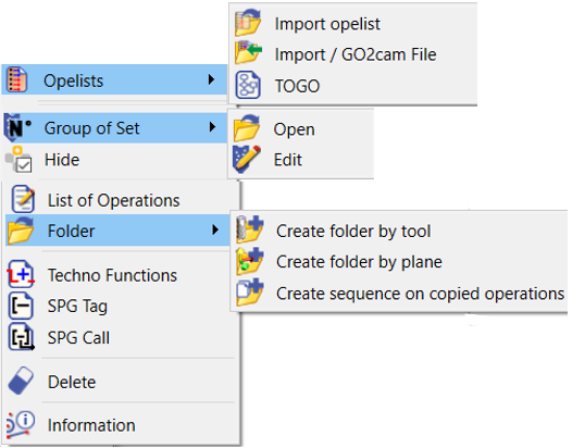 Techno Functions | These functions are considered as operations in the tree ; you can add stop, coolant and specific operations etc. |