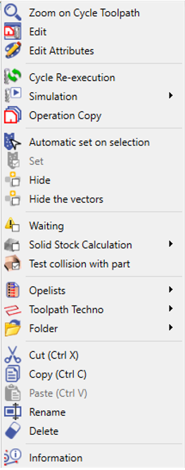 To accede to these functions, right-click on any operation line of the Machining Tree :