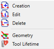 Edit (Edit Machining) | You can change the reference, or the strategy file or the tool. If you select several cycles in the tree, you can click Edit Machining and edit some common parameters to several cycles. |