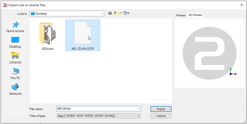 Select the import option to be applied to the solid. Click “Apply” The axis system can also be imported from solid CAD files by activating the Wireframe Import option. This feature is particularly useful for creating holders by importing STEP files from databases such as Sandvik or Iscar. It allows the recovery of the axis systems for positioning inserts, as illustrated for the turning tool in the image on the right. | ![]() |