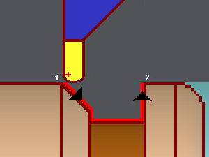This option enables to properly program Roughing and finishing operations with the same tool. ( Roughing toolpath in Imaginary Nose, Finishing in Part). In such a situation, it is advised to force the P Point option directly in the tool page so as to not have 2 different piloted points for the same tool. Applicable only for Finish Groove cycle |