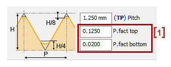 In the tool window above, we defined the pitch and the factors [1] (Top and bottom) to determine the total thickness between the outer pass and the inner pass.