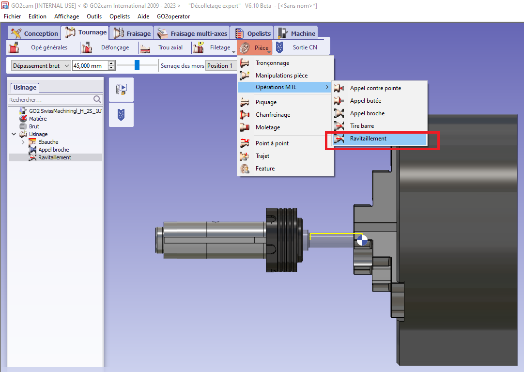 ![]() | Re-chucking operation enables to push the bar with the sliding headstock to re-chuck the next workpiece. This is a MTE operation available in the menu of same name. |